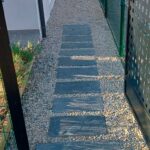 Este tipo de instalación permite crear recorridos visualmente atractivos que se integran con el paisaje. Además, la pizarra presenta una gran resistencia al desgaste y mantiene su aspecto durante muchos años incluso en exteriores.